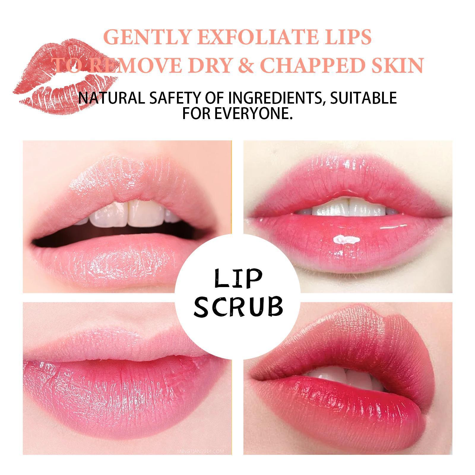 Our lip scrub contains Jojoba oil, coconut oil, avocado oil. It can soften the aging cutin of lips, remove the dead skin tissue caused by dryness and dehydration, and let you use lipstick more evenly and smoothly. The way to use it is simple: apply the right amount of lipstick on your lips with your fingers or a spoon, gently massage it with your fingers for 1 minute, gently wipe excess lipstick with a towel or rinse with water. And it moisturizes your lips.