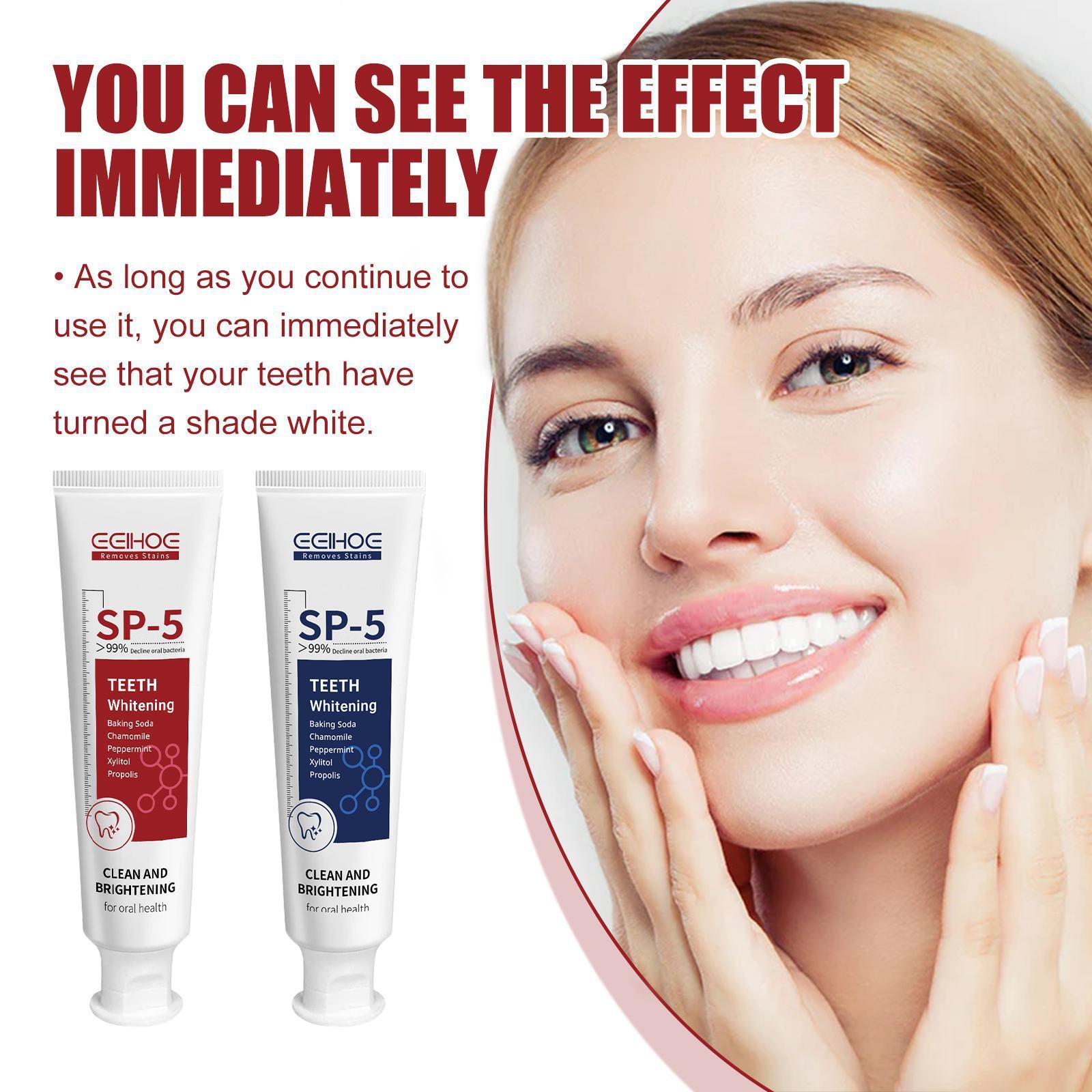 Teeth whitening toothpaste contains xylitol and propolis. It can soothe gum tissue, reduce irritation, and maintain a healthy oral environment. Its use is very simple: squeeze an appropriate amount, last for more than 3 minutes, once a day in the morning, apply toothpaste on the toothbrush, and rinse your mouth with water at night to achieve better whitening effect. And it can whiten teeth and is not easy to yellow.